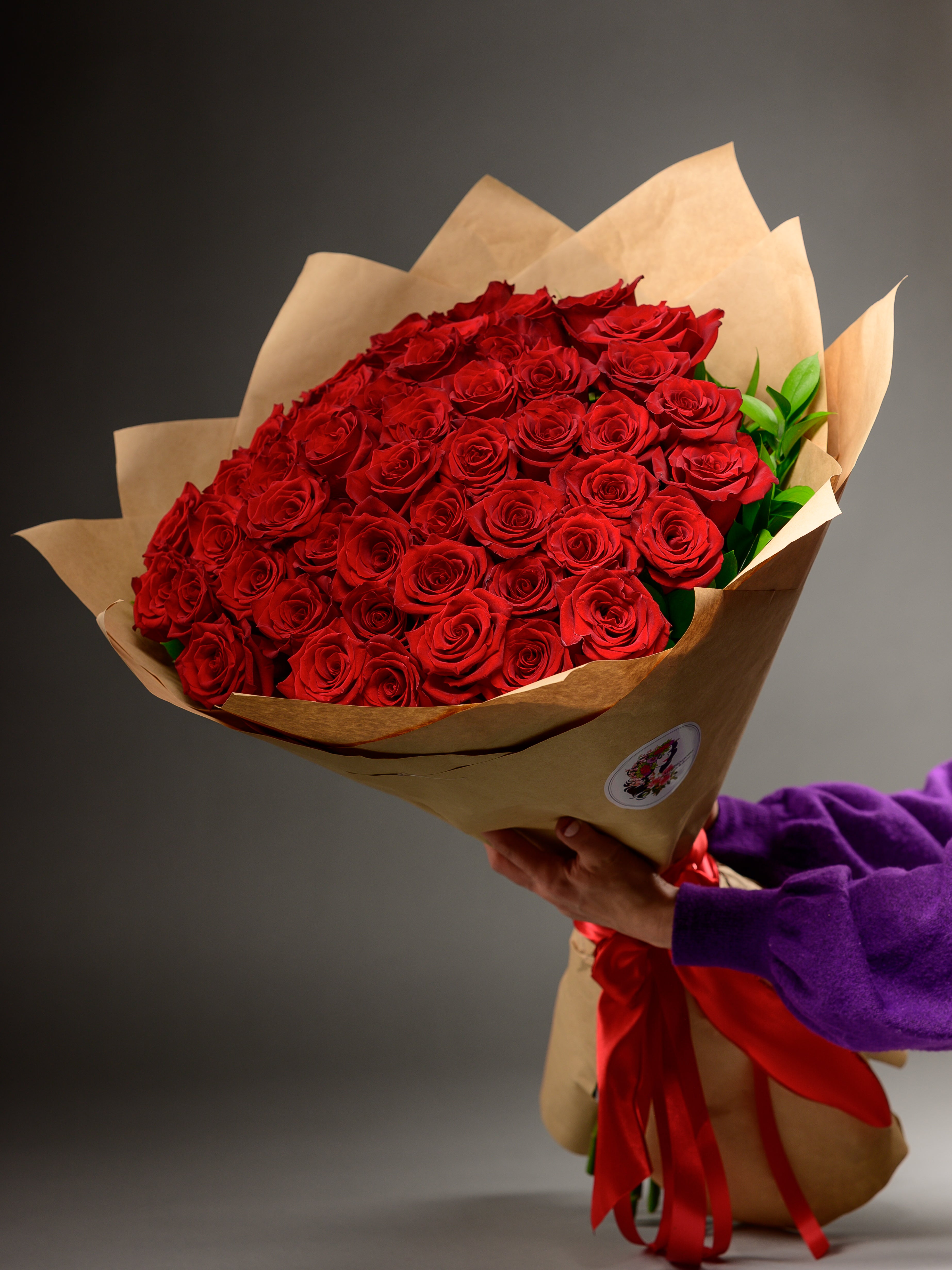 Unleash the beauty of our Roses Bouquet. Hand-crafted with vibrant, long-stemmed roses, this arrangement exudes elegance and romance, making it the perfect gift for any occasion. Show your love, appreciation, or simply brighten someone's day with this luxurious and exclusive bouquet.